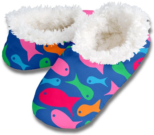 | 31 of 31 people found the following review helpful By Amazon Verified Purchase This review is from: Snoozies Womens Fleece Lined Footies (Apparel) Much like a sweatsuit, these slippers are for comfort, not fashion. I purchased the snoozies decorated with cats wearing bowties, because if they're not going to look good anyway, I might as well have adorably fancy cats on my feet.The slippers themselves are incredibly comfortable and have a super soft lining. The no-slip bottom helps me to not fall on the hardwood floor, and they also wash up really well. I learned this after spilling half a can of wet cat food on them (go figure!) and throwing them in the wash. They came out of the dryer just as soft as ever, and there was no distortion. These slippers are ridiculous, and I love them. 18 of 20 people found the following review helpful By jatnj "Janet" (Southern New Jersey) - See all my reviews Amazon Verified Purchase This review is from: Snoozies Womens Fleece Lined Footies (Apparel) These aren't slippers as there is no sole, just those little no slip dot thingies. That being said, these are extremely comfortable. Despite the fleece lining, they are not overly warm, they're just cozy without making my feet all sweaty. They're the first things that go on my feet after my shoes come off. 11 of 11 people found the following review helpful By neverbeentospain (Houston, TX) - See all my reviews Amazon Verified Purchase This review is from: Snoozies Womens Fleece Lined Footies (Apparel) I just wore these for the first time, and I love them. They are warm and fuzzy, and the non-slip pads on the bottom work pretty well. I wear an 8, and the medium fits perfectly. I like them so much that I just bought another pair for my sister. |
